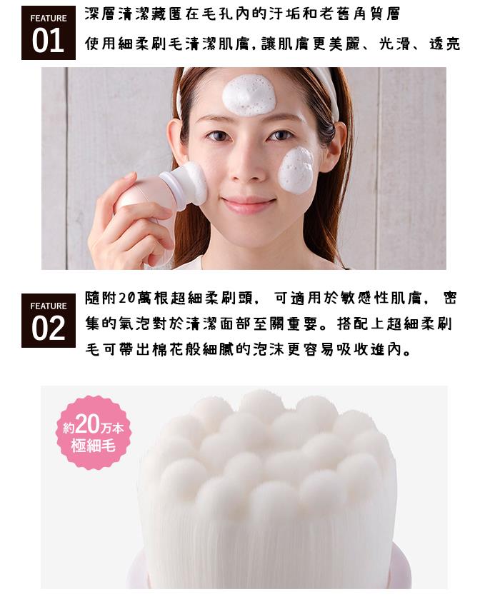 商品內容 : 主機、一般肌膚用刷頭、敏感性肌膚用超細柔刷頭、中文說明書及保證書