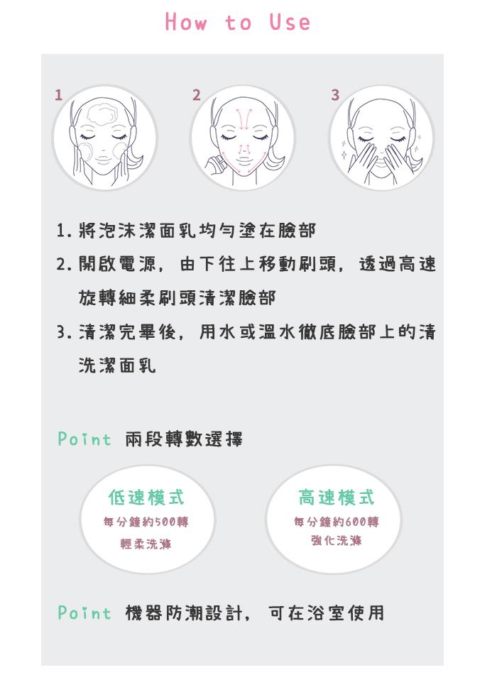 商品內容 : 主機、刷頭帽、細柔刷頭x2、中文說明書及保證書