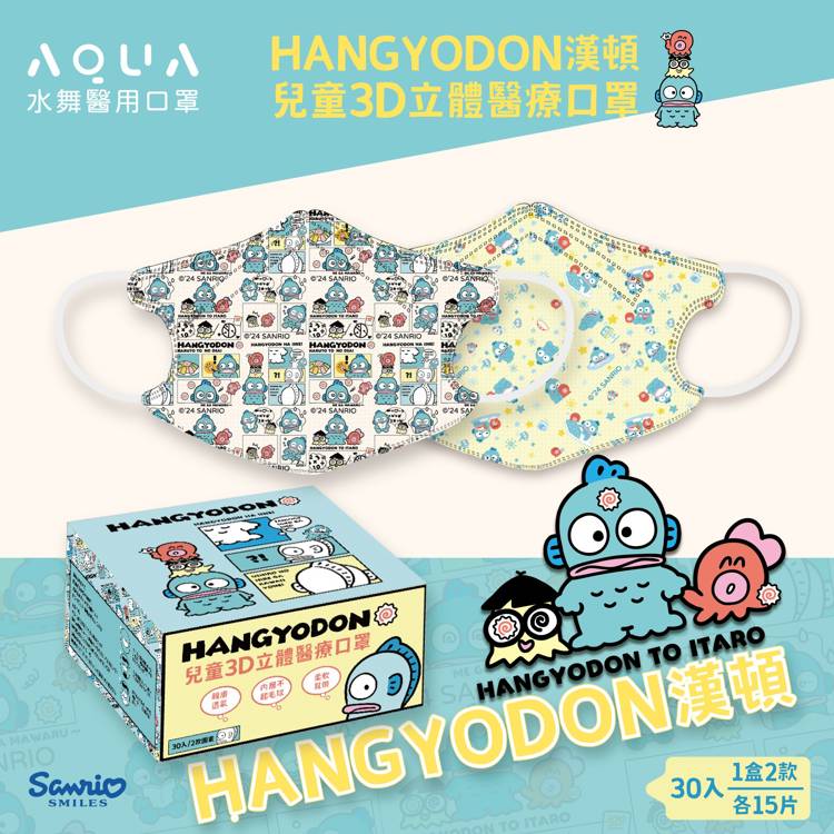 【三麗鷗】人魚漢頓-兒童3D口罩 (30入/盒)