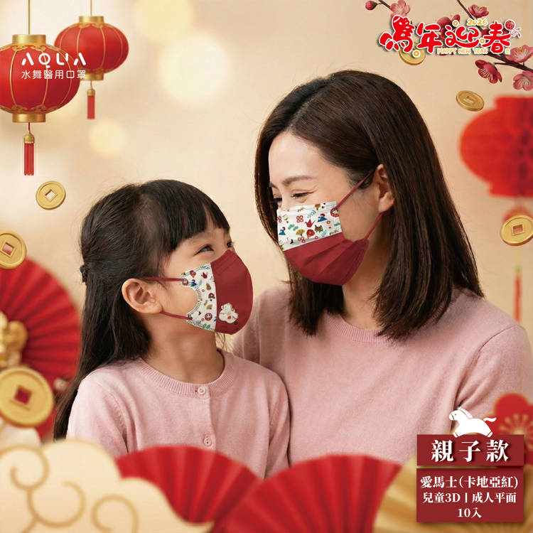 2026 萬年迎春限定!馬年專屬圖騰,守護全家新年健康【愛馬士】親子口罩組,與寶貝一起戴上同款幸福色系新年送禮新選擇!馬年限定親子組合,傳遞健康與祝福獨特圖騰拼接設計!插畫細節與純色交織,展現獨特品味專為孩子打造!3D 立體剪裁不貼口鼻,呼吸更自在MIT 台灣製造:水舞生醫專業生產,具備醫療器材許可證,品質安心醫用級防護: 符合 CNS14774 標準,三層防護結構生產/製造商名稱:康威生技有限公司