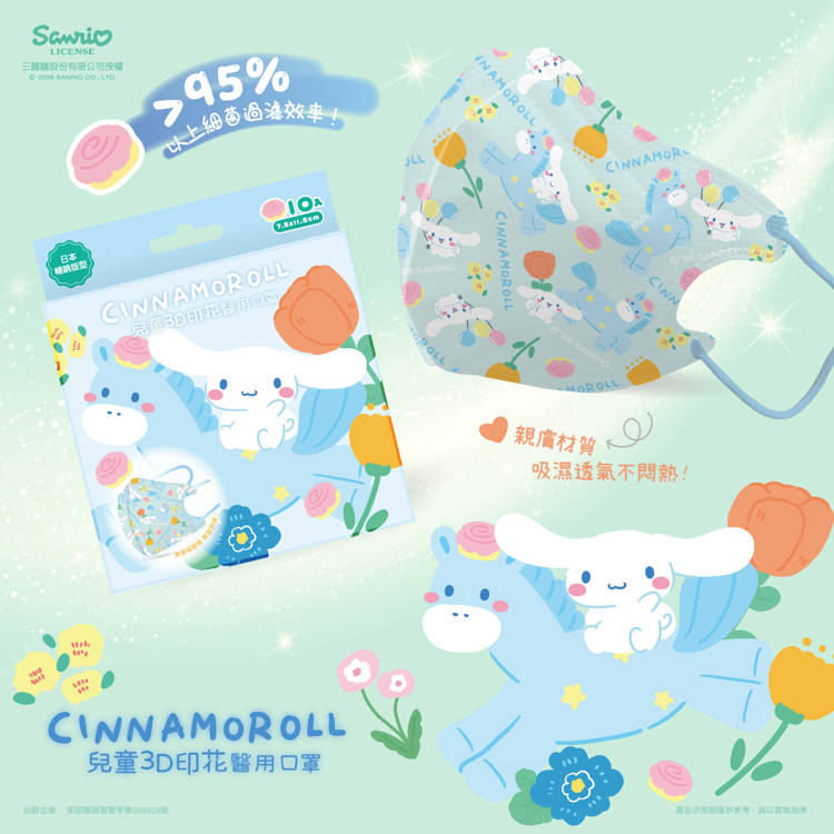 三麗鷗馬年口罩用清新插畫感把生活變可愛角色風格:大耳狗 × 馬年元素,清新耐看兒童3D版型:立體剪裁,提升服貼與呼吸空間舒適材質:親膚吸濕透氣,減少悶熱感