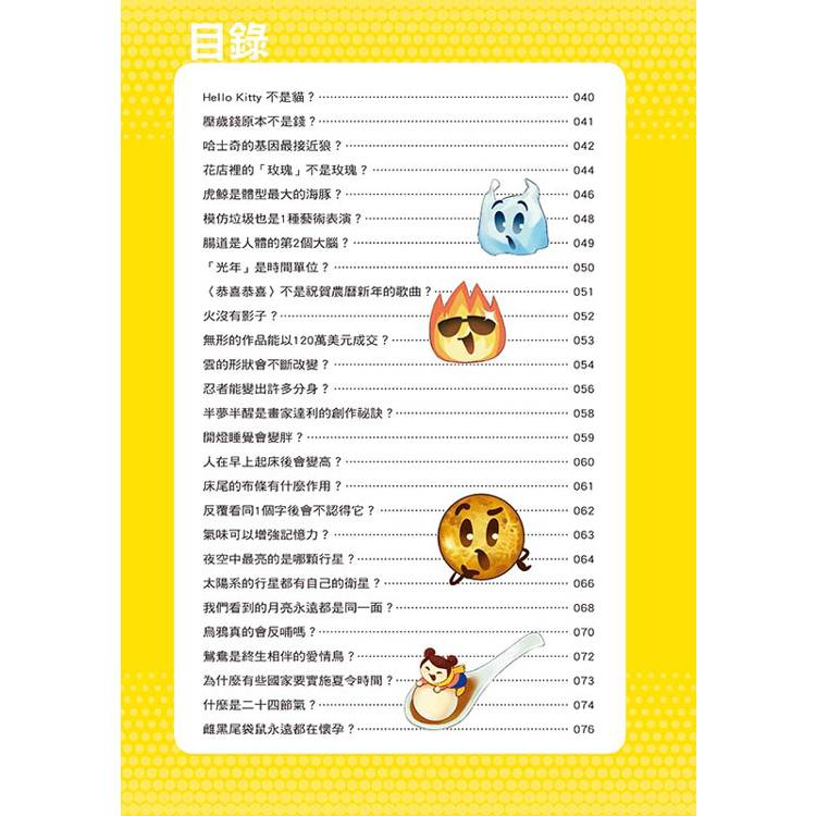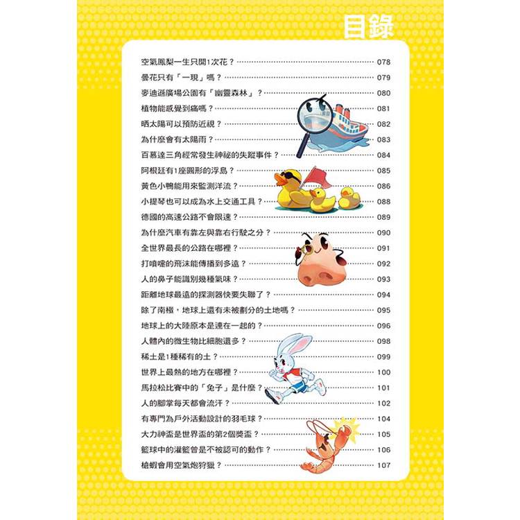 本書介紹新奇又富有啟發性的冷知識,涵蓋自然科學、藝術、社會、健康與體育、科技等多元且豐富的知識,並且搭配生動有趣的插圖及淺顯易懂的文字,讓小讀者既能輕鬆吸收新知,又能從閱讀中獲得驚喜。