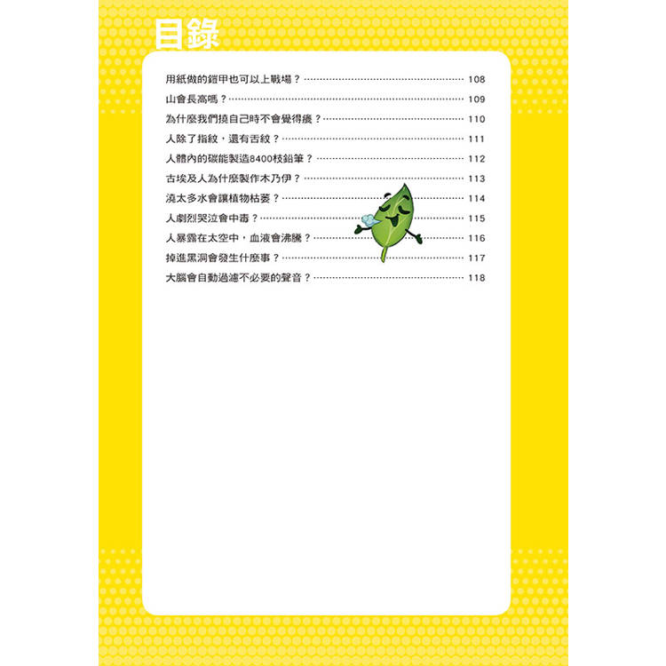 生活中隨處可見的事物,其實蘊藏了各種讓你意想不到的祕密。本書蒐集了五花八門的問題並提供詳盡的解答,引導小讀者透過全新的角度觀察日常生活中的事物,將平凡轉化為有趣的體驗,喚醒他們的探索精神,學習從生活中發現更多的小知識。
