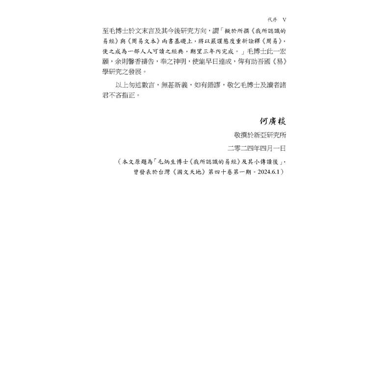 (本文原題為「毛炳生博士《我所認識的易經》及其小傳讀後」,曾發表於台灣《國文天地》第四十卷第一期。2024.6.1)