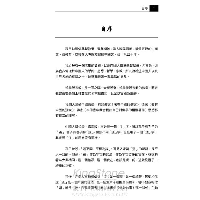 可惜,許多人寧願相信這「道」是一個理、是一個純善,甚至相信這「道」是一個所謂的自然,是一個無所不在的萬有總和,卻不願意相信「道」就是 神。我要請讀者注意,本書中《奇妙的道》那一部份,主軸乃是「道就是 神」,你能進入這一認識,那你對真理就是豁然開通了。