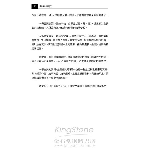 本冊書要談到中國的宗教,自然是以儒、釋(佛)、道三教為主要的討論標的。另外還有回教和最後傳進來的基督教。