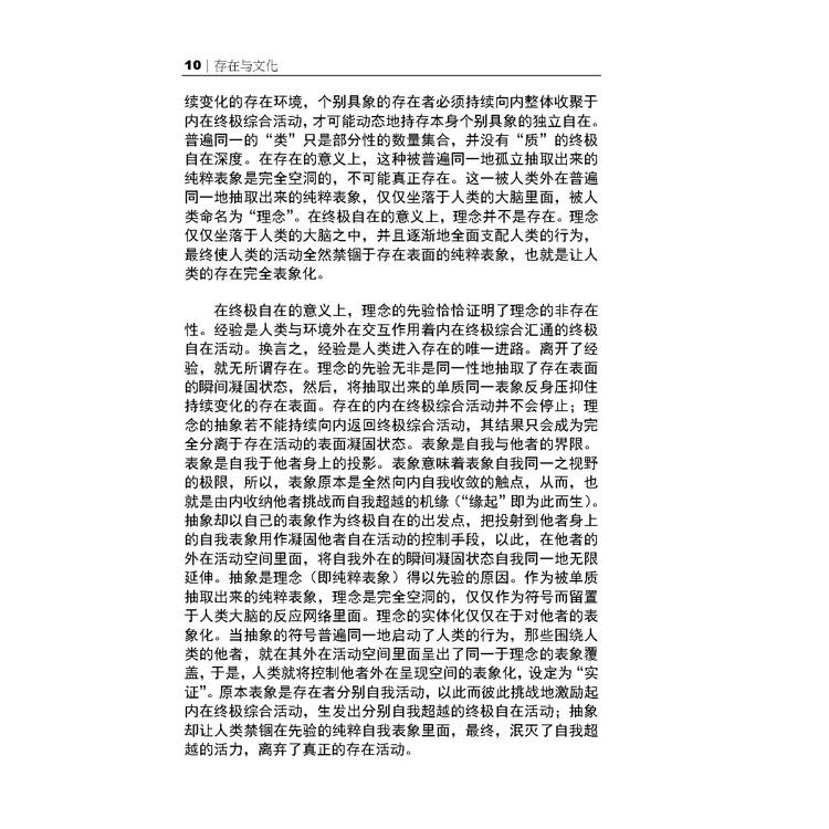 本書簡介了存在的本性;人類進入存在的特殊進路(文明)及其不同文化向度(平面橫向的抽象文化,縱向超越的一神論文化,“圓”性迴圈的個別具象文化);人類文明如何把本身存在交給了機器的統治;以及人類還原於本身存在的可能。