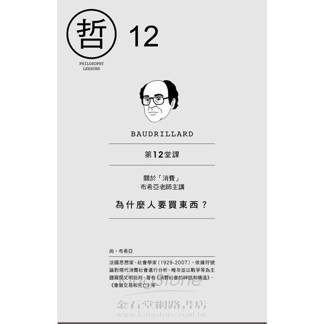 在這間不可思議的哲學教室中,蘇格拉底將告訴你「為什麼人要讀書」、笛卡兒將告訴你「什麼是真正的我」、齊克果將教你「如何抹去心中的不安」、布希亞將告訴你「為什麼人要買東西」……如果你也對上述的問題感到疑惑,不妨向書中的15位哲學家學習「淡定的智慧」!