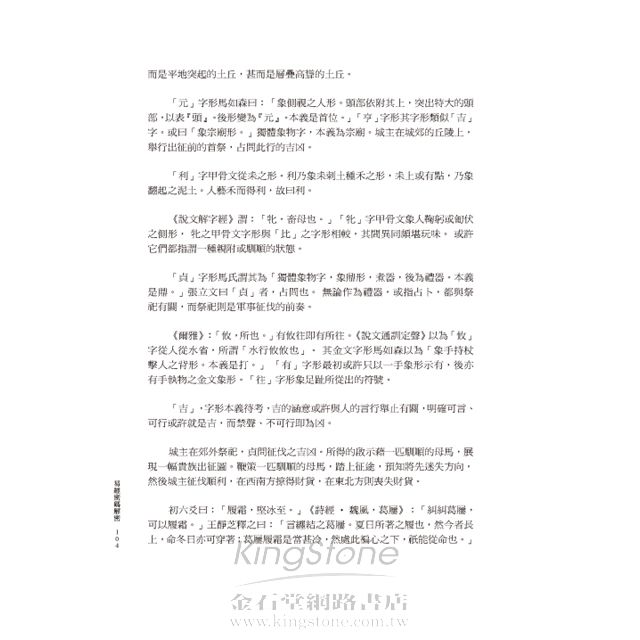 ◎文字學的:語言與文字向來具有神聖又神祕的力量,本書作者研究方法之一,就是從甲骨文字著手,破解每一卦卦名在文字中顯示的深刻意義。