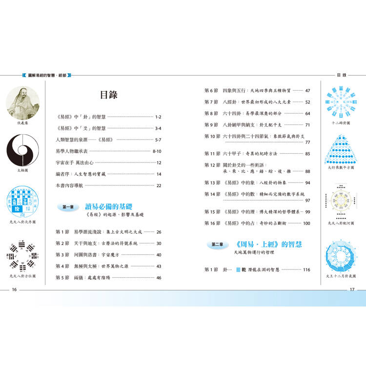 ◎影響深遠:介紹東西方由易經概念發展出來的文物,以及中國各朝代研究易學的文人、術士,展現出無論在文化、風俗、生活、思想等各層面,皆受易經影響深遠。