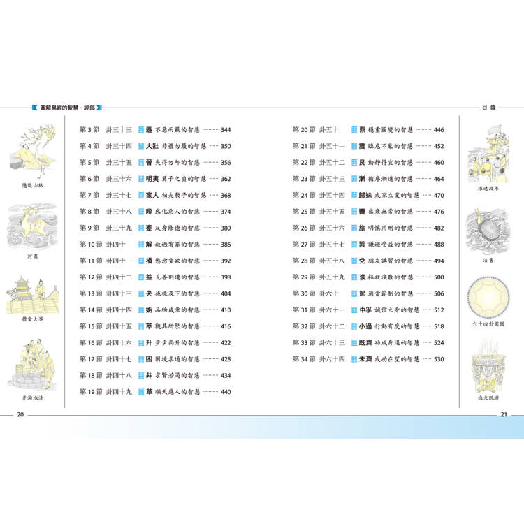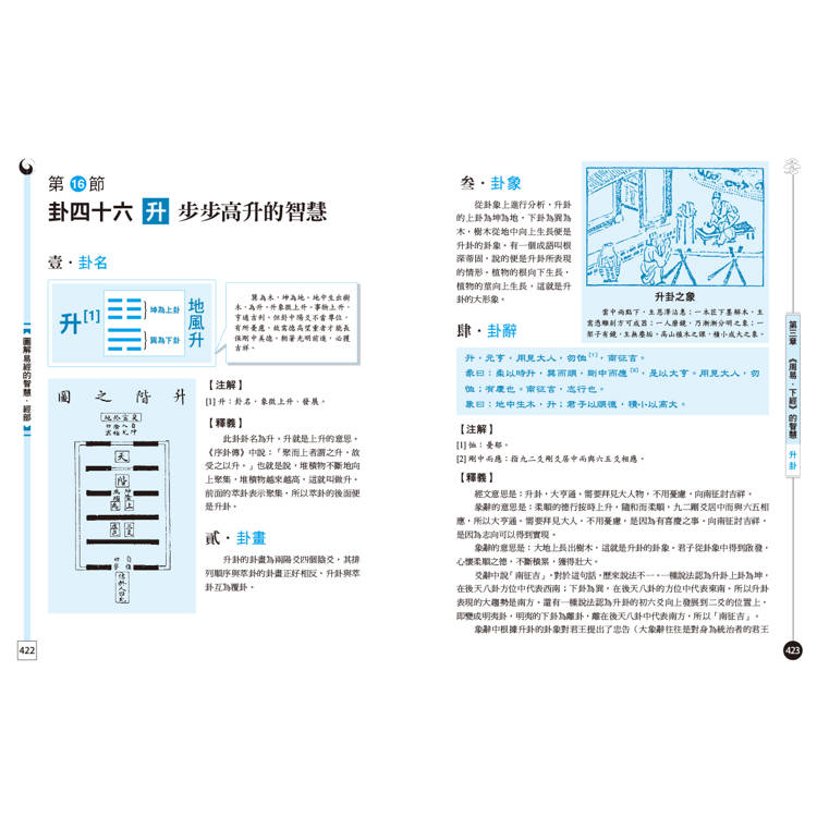 ◎精美插圖,輔助閱讀:以三百張圖片、六百餘幅古圖與精美手繪插圖輔助解說,讓易經卦爻更容易被理解。
