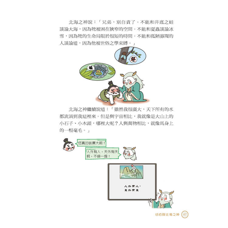 3.漫畫小劇場演繹寓言故事,展現莊子及其所處時代名人的哲學思想。