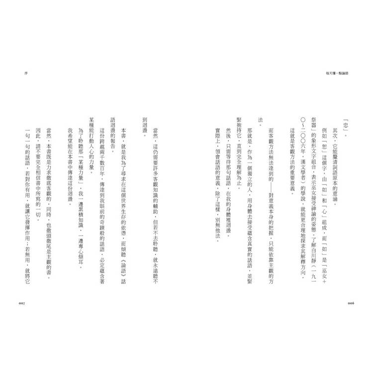 書中以嶄新觀點重新與《論語》對話,透過別具一格的詮釋,將孔子的智慧重新落實於現代。