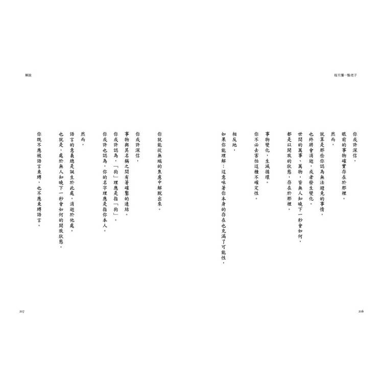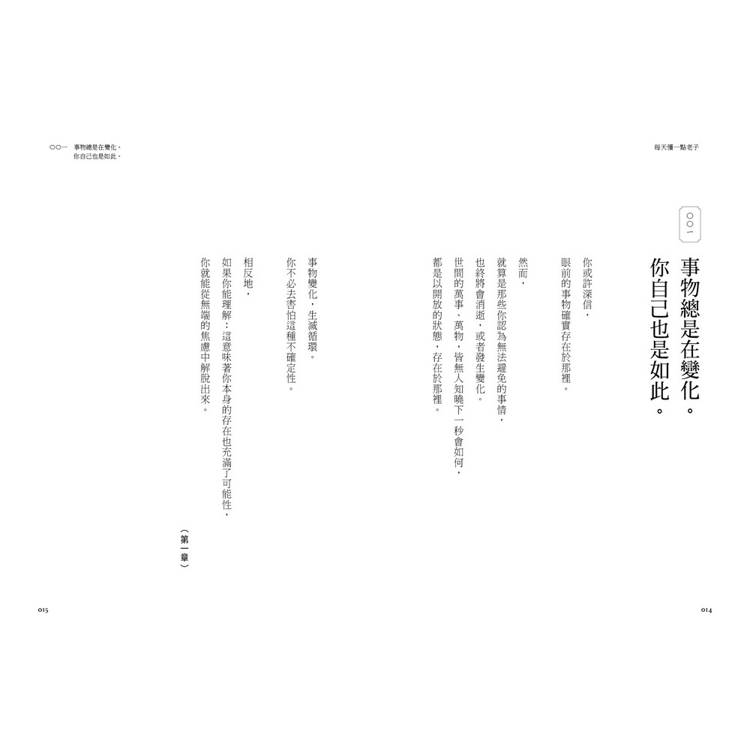 本書將引領讀者,以老子的話語照見自身,從生活中的困境與變化汲取力量,找到活得自在而真實的方式。