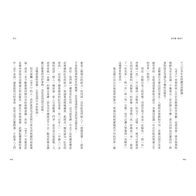 本書是一場重新認識《老子》的旅程,也是一次獲取心靈自由的契機。書中以平易語言重新詮釋《老子》的智慧,讓讀者得以於日常生活中實踐: