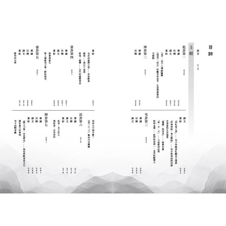 本書的著眼點,在於探尋《周易》古經原貌,揭示《易》、《老》內在學脈關聯,鉤沉哲學思想與人文意識從未顯題化到顯題化的發展脈絡。同時,對卦、爻辭中明顯的儒家思想及其他學派思想也鄭重地進行賞析和討論,還有一些與考古新材料有關成果的議題,也予以積極採用。為此,每卦一章,均由導讀、正文、註釋、譯文及賞析五部分組成。本書的文筆力求簡潔,避免繁冗的訓詁和徵引,以立廣大普通讀者閱讀。
