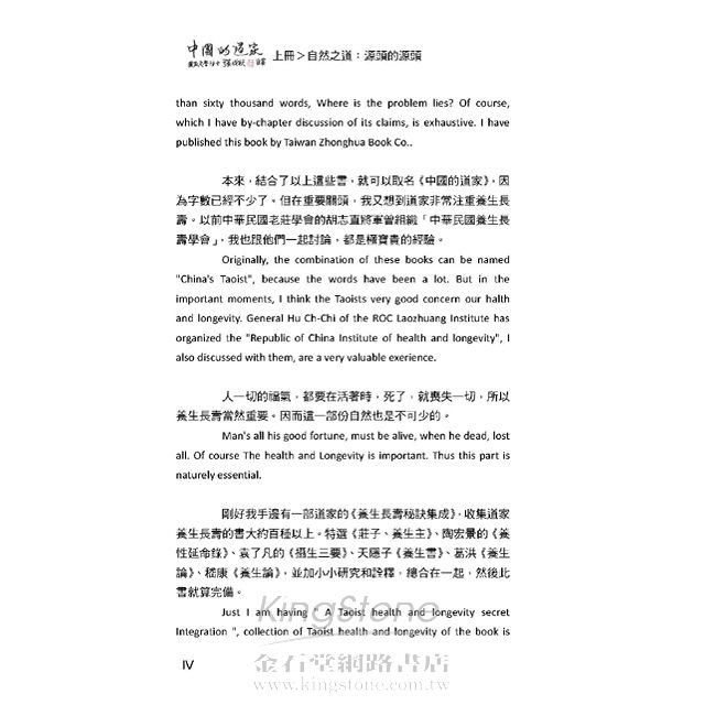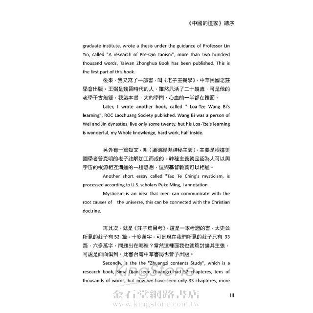今將既往有關中國的道家著作,匯集成書。以字數限制,分成兩冊。