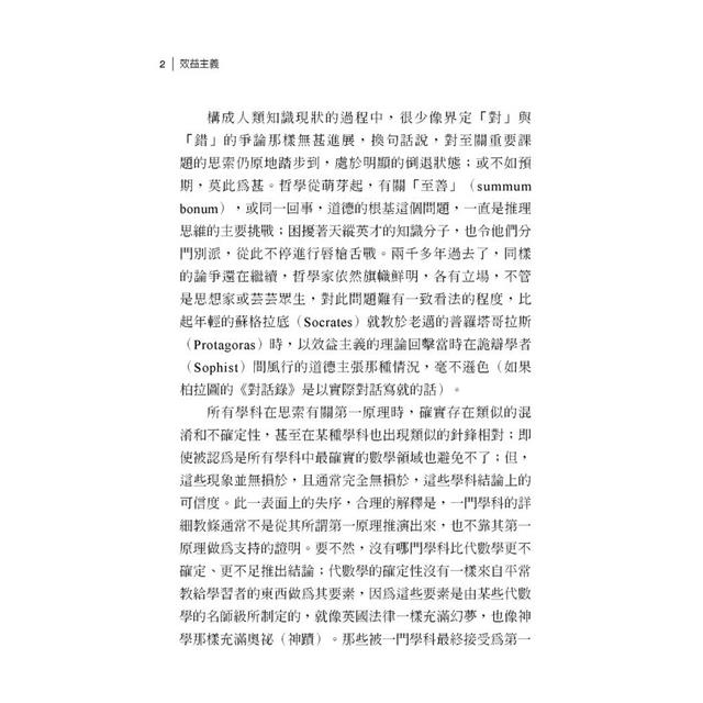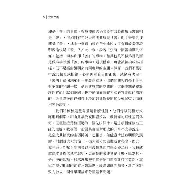 最後,說一下「Utilitarianism」的譯名,早期譯作「功利主義」是讀通其原義,並以中國已有的思想配之;因「明其道不計其功」及「計利當計天下利」,都指行事不能僅考量自身之名和利。只可惜民間視「功利」為「勢利」,僅顧一己之私而望文生義,易遭誤解,遂取「效益主義」以顯其計算之法,但若用「效益至上主義」或更能表達求人類最大幸福的精髓。「utility」譯作「效用」和「效益」均可,但以「原理」來說,重在需要而有用,而非只算好與壞的利弊,所以採「效用原理」。「expediency」譯作「權宜」,在民間觀念上以「便宜行事」為主;但若以「春秋大義」而言,是指有條件(即特殊情況下),犧牲一己之私,為眾生除害或謀福利,而從事平常不做的行為,與「效益主義」所標榜的相符,是「可以適道,未可與立;可與立,未可以權」的「權」,也是「微管仲,吾其披髮左衽矣。」的道德標準;用「宜」而不用「謀」,是「正其宜(誼)不謀其利」的「宜」,「宜」者,「義」也,亦符小彌爾的思路。