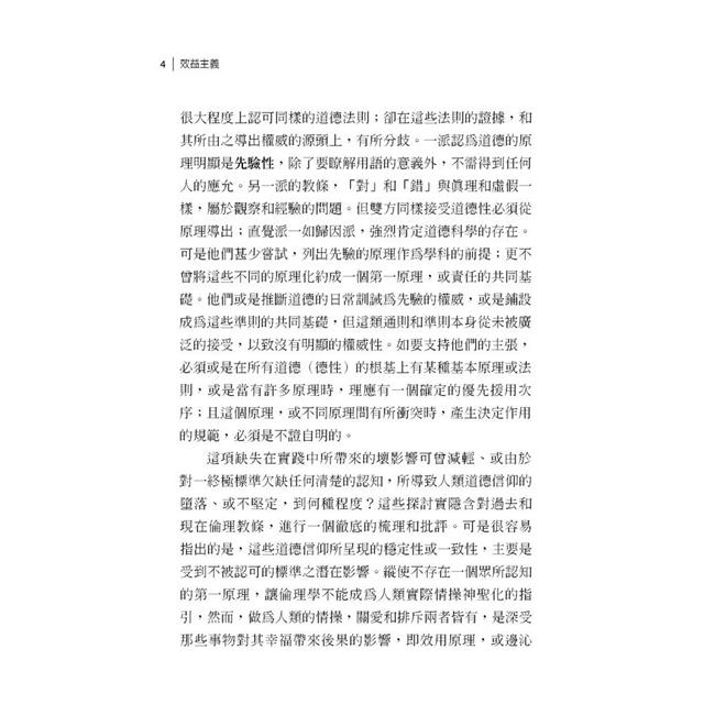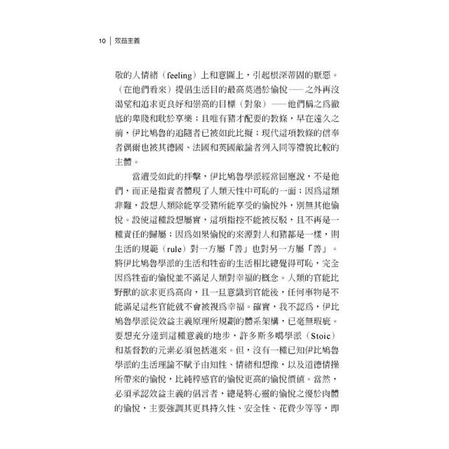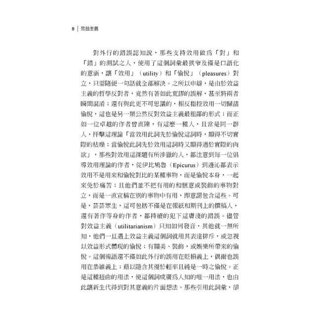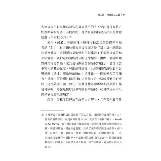 這是一本影響深遠,又是譽之所在謗亦隨之的倫理學經典,更是「述而不作」的英式代表作;因約翰.斯圖爾特.彌爾(1806-1873)在本書沒有什麼創見,但將前人不同觀念折衷整合成令人信服的功力卻是無人能比。這實得助於著者的養成教育及自我反省,其帶來的意義值得後人深思,茲分段詳述如下: