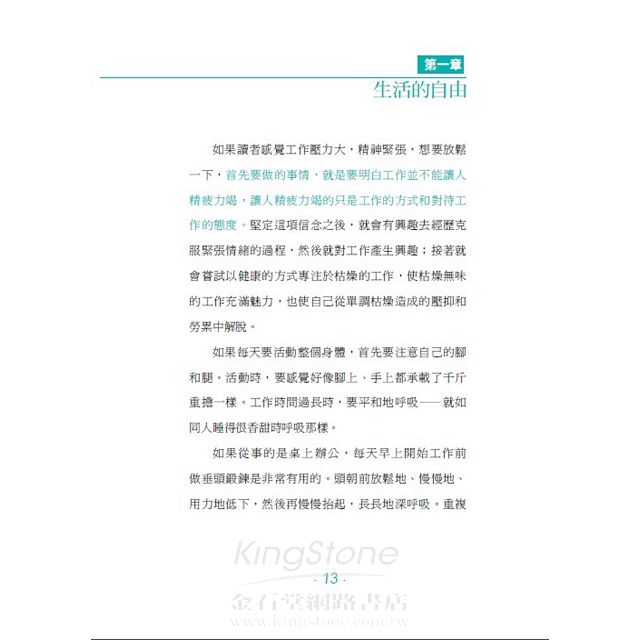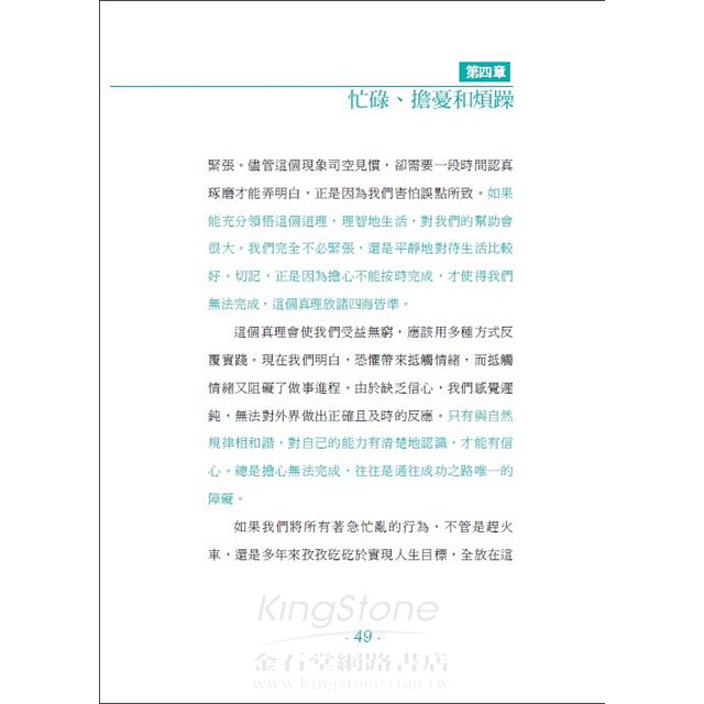 將生活中危害心靈的事物分為十四個主題,詳細教導讀者如何以平靜的心面對生活大小事。