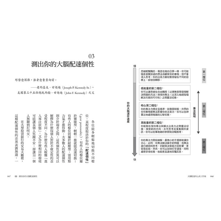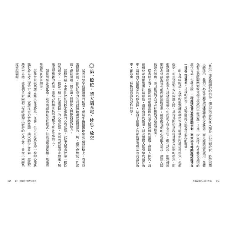 劍橋大學醫學博士暨神經科學專家米圖.斯托羅尼獨創「大腦配速」的革命性工作法,將大腦比擬為汽車排檔,高、中、低三檔各自有其適合的心智活動。透過環境設計、運動、呼吸、睡眠等日常可行的方式,精準切換大腦狀態,瞬間進入專注與心流模式。