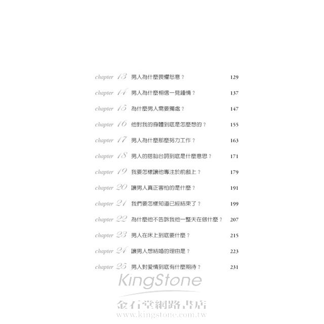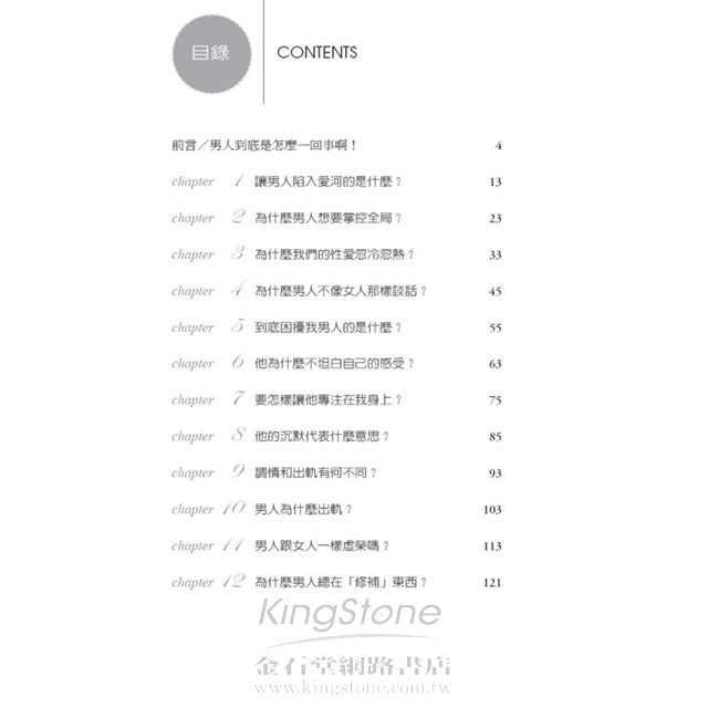 男人不留下來過夜的意義、他為什麼瘋狂忌妒、聊天的時候為什麼嘟噥、為什麼他買家電送妳當生日禮物……還有數十個難解的男性奧妙。
