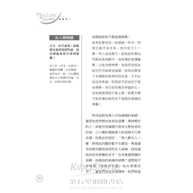 男人到底怎麼一回事?當女人搞不定男人時,與其找身邊的姊妹淘當感情顧問,不如聽聽男人自己怎麼說!