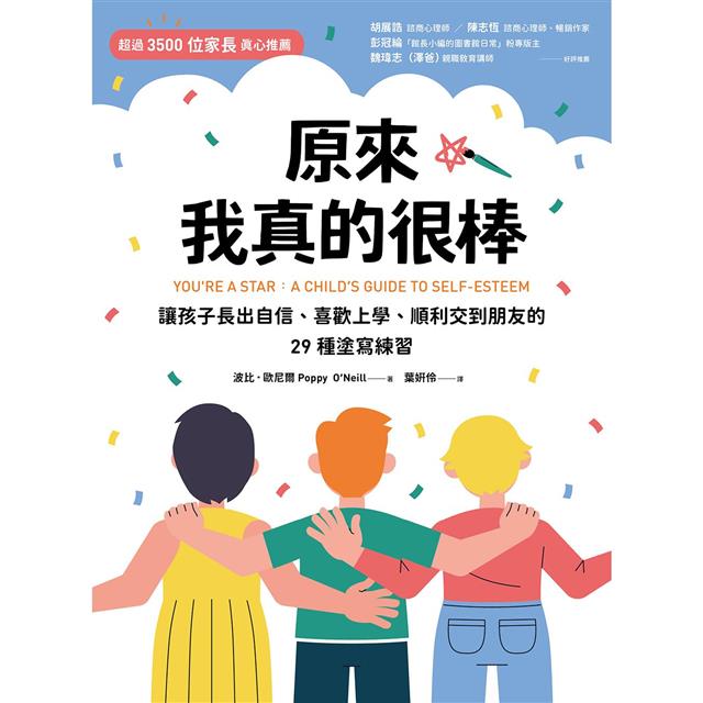波比.歐尼爾(Poppy O’Neill)所著的《原來我真的很棒:讓孩子長出自信、喜歡上學、順利交到朋友的 29 種塗寫練習》是一本出色的練習本,文字淺顯易懂,又有可愛的角色、有趣的活動可以吸引孩子,協助他們理解自我價值。這本書中穿插了許多活動,讓孩子可以覺察到情緒,並在思考的過程中給他們力量和信心,把視線和注意力都聚焦於自己所具備的優勢與資源,並且支持他們一小步、一小步地嘗試以前沒做過的行為,讓他們的恐懼和緊張都可防、可控。這本書協助孩子理解、重視自己與別人的獨特之處,支持他們分辨真正的友誼與虛偽的人際關係。本書探討了身體形象等重要的議題,也提到健康的生活方式對幸福有多麼重要。書中還教孩子認識冥想與正念,透過身體和感官直接連結當下的體驗,讓孩子學會如何輕鬆地體會內在具備的平靜與喜悅。
