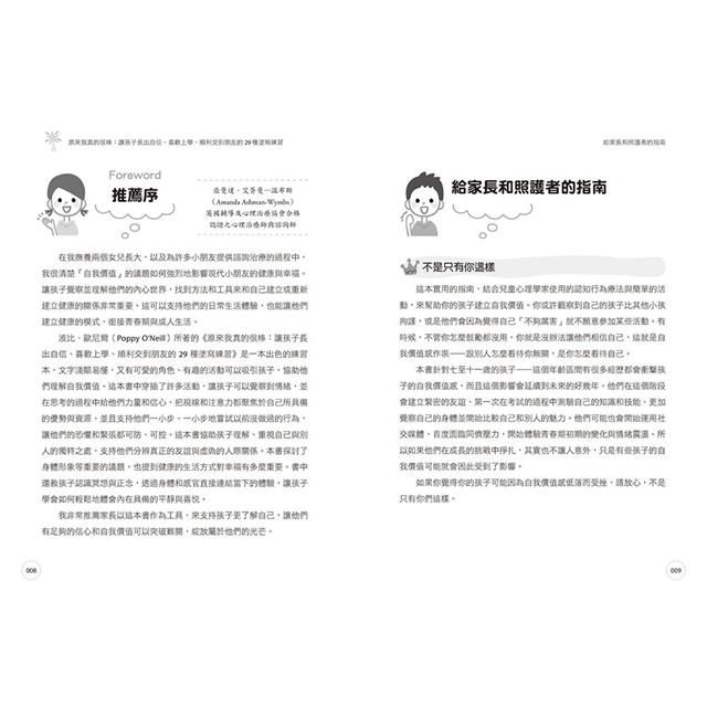◆這本書太棒了!應該要讓更多學校能夠取得這些資源,針對那些需要建立自尊心的人。這本書的內容不會讓人感到太壓迫,它分成一段、一段來解說,太棒了!(Sophie)