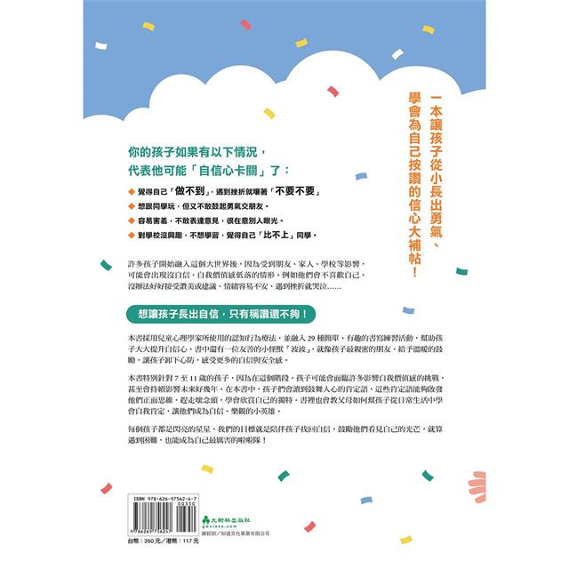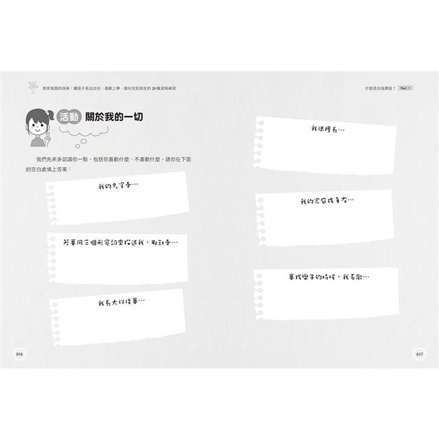 本書採用兒童心理學家所使用的認知行為療法,並融入29種簡單、有趣的書寫練習活動,透過輕鬆的方式,幫助孩子大大提升自信心。