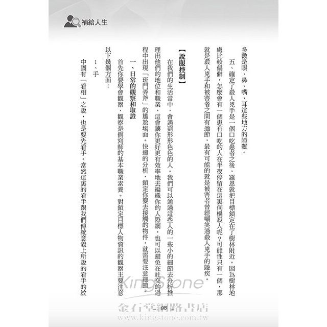 一種最強大的說服控制術 ——來源於犯罪心理學的側寫術 1、鎖定你的目標人   一個人的出身背景、受教育程度、職業、性格、心理這些因素都會無形地滲透到一個人的言行舉止當中。在我們日常生活中,選擇物件進行說服之前,最要緊的工作是瞭解目標物件的資訊,即鎖定目標人。   這項工作做得最出色的當然要數側寫師。側寫師的職責所在就是幫助警方縮小搜捕範圍,及時制止犯罪行為的延續。他們往往對作案手法、現場佈置等來判斷犯罪嫌疑人的人種、性別、年齡、職業背景、外貌特徵等。而這些具體又重要的資訊都是從一些細節部分下手,通過對細節的觀察瞭解一個人。   迅速讀懂一個人,這是作為FBI行為分析科的側寫師們最基本的工作。 【側寫再現】   約翰•馬爾福最近在處理一個案件。在維吉尼亞州中心偏南的地方有一片占地面積較大的樹林,很多來往州北邊的人在不想繞路的情況下,就會在此穿行。最近,這裏連續發生了好幾起槍擊案件。死者大多數是年輕英俊的男性。   據勘察,這幾起槍擊案件都是在夜間發生,地點都在樹林的深處。因為樹林較大,所以守林人並沒有聽見過槍擊的聲音。兇手的手腳很乾淨,現場沒有留下任何的痕跡,一時案件陷入了僵局。這天,聯邦調查局把側寫師羅恩•恩格拉斯派來瞭解這個處於僵局的案件,羅恩發現這幾個受害者都是從背部中槍,也就是說兇手是在背後襲擊了受害人。第二天,羅恩從守林人那裡探尋到最近沒有殘疾人或者是讓人印象深刻的人進出過這片樹林。   回到警局後,羅恩宣佈說殺人兇手是一個患有口吃的人,於是大家開始著手調查樹林周邊是否有語言障礙者居住,最後在離樹林近處的加油站抓到了殺人兇手湯姆,讓人吃驚的是這個湯姆真的如羅恩所說有著嚴重的口吃,而他之所以殺害那些年輕的小夥子,是因為他們曾經路過此處加油的時候,嘲笑過湯姆口吃的這個隱疾。 【側寫分析】   羅恩是怎麼判斷殺人兇手是個有口吃的語言障礙者的呢?   一、羅恩發現所有的被害者都是在後背中槍,這是一個疑點。在殺人兇手持槍,被害者手無寸鐵的情況下,他為什麼非要選擇背後偷襲而不是正面攻擊呢?那麼應該是殺人兇手的身上有著什麼不同於別人的地方,他不想讓別人看到他的不同之處,所以用從後方偷襲的方式殺死被害者。   二、還有一種可能就是他的智力有問題,從小被別人恥笑,所以產生了自卑的心理。但這不可能,殺人兇手把每一起案發現場的痕跡都處理的那麼乾淨,這絕對不是一個智力有障礙的人可以做到的。   三、守林人告訴羅恩,最近沒有殘疾人或者是相貌讓人深刻的人出入樹林。也就是說殺人兇手的外表沒有問題,是那種看一眼不會記住的。要不然守林人絕對會有印象。   四、如果殺人兇手外表沒有明顯的問題,那麼就是看不見隱疾使他自卑。看不見的隱疾大多數是眼、鼻、嘴、耳這些地方的障礙。   五、確定了殺人兇手是一個口吃患者之後,羅恩就把目標鎖定在了樹林附近。因為樹林地處比較偏僻,怎麼會有一個患有口吃的人在半夜停留在這裏伺機殺人呢?可能性只有一個,那就是殺人兇手和被害者之間有過節,最有可能的就是被害者曾經嘲笑過殺人兇手的隱疾。 【說服控制】   在我們的生活當中,會遇到形形色色的人。我們可以通過這些人的一些小的細節去分析推理出他們的地位和職業,這會讓你更好更有效率地去編織你的人際網,也可以避免在社交的過程中出現「班門弄斧」的尷尬場面。快速的分析,鎖定你要去接觸的物件,就需要注意細節。   一、日常的觀察和取證   首先你要學會觀察,觀察是側寫師的基本職業素養。對鎖定目標人物資訊的觀察主要注意以下幾個方面:   1、手   中國有「看相」之說,也是要先看手。當然這裏的看手跟我們傳統意義上所說的看手的紋路來算命就大不同了。看手主要是看手指甲,通常指的是手指甲的長度還有指甲裏面的殘留物。比如指甲裏面有白色粉末,再配合上這個人衣著的搭配和整體的氣質等,就可以大膽的假設這個人是從事教育工作的。再比如說一個人的手指甲都很長,但唯獨右手的食指指甲非常的乾淨,那麼就說明這個人可能有咬指甲的習慣。在澳洲的說法是咬指甲的人通常是從事接待工作的,而且他們的接待工作勞動密集度應該很強。   2、長相   重點看的是臉、腰、臀部和腳。康熙時候的施琅曾經在訓練他的海軍時說過這樣的觀點「北人善馬,故臀大;南人善舟,故腳大」就是說北方人經常騎馬,所以臀部很大,南方人經常站在甲板上,所以腳大。這都是因為長期從事一項工作的原因所導致的,注意這些小細節,也可以分析出別人的職業範圍。   3、穿著   通常我們說看衣著,一是看衣服的面料,這可以判斷出這個人的大概收入。這也好讓你在接下來的判斷裏排除一些和他身份地位不符合的職業。另外,如果是在日常生活中碰見的,那麼請注意他衣服的褶皺和是否哪個位置有磨損或者污漬。比如說他的衣擺和袖口有白色粉末,在加上剛才上面所說的指甲裏面也存在著白色粉末,很有可能這個人就是個老式學校的教師。   4、言談舉止   這也就是指的這個人的說話方式、氣質、表情和動作。這點是在看一個人的內在,這也是最能反應一個人職業與地位的。比如