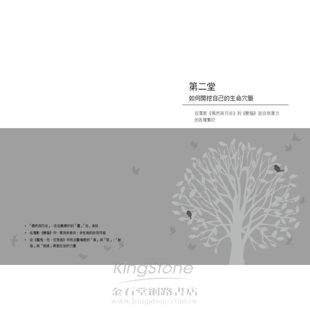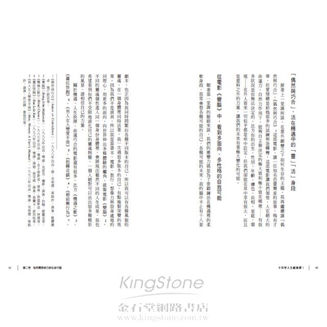 這本書除了整理自己上課前手寫的講說大綱、在其他學校演講的講稿外,還有一些是看學生們的上課筆記與課後心得勾起的記憶。現在獨自一人在書房,看著過去所說的話,宛如還身在教室,感覺當時像是有一股未知的力量,在借我的口說出這些特別激勵向上的話,除了說給學生聽之外,有時我也會聽聽自己在說什麼,學生在問什麼,即使在課程已結束很久的此時,說著和聽著仍然在我腦中繼續進行,思想的會面如此迷人。總之,是一種很特別的精神分裂狀態。