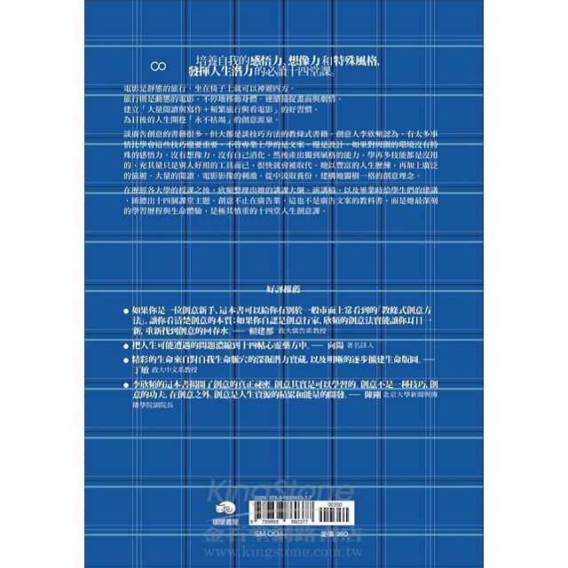 ◆讀了此書我才明白她源源不斷的創意是來自精彩的生命。精彩的生命來自對自我生命脈穴的深掘潛力寶藏,以及明晰的逐步擴建生命版圖。——丁敏(臺灣政大中文系教授)