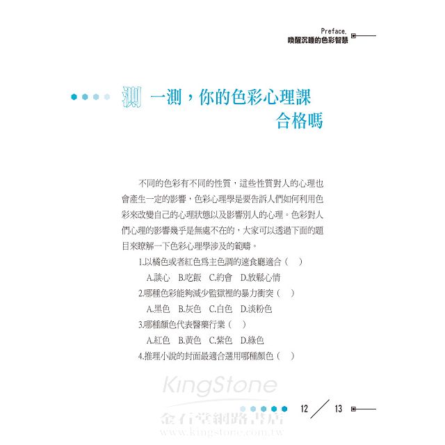 色彩帶給我們的影響是複雜的,經常是多種效果混合在一起的複合效果,也存在著巨大的個體差異,這也讓色彩心理學充滿變化和趣味性。掌握了色彩與人的心理活 動之間的關係便可利用色彩的能量來改善性格,也能減少因色彩使用不當而給人帶來的困惑!當我們在五光十色的櫥窗前駐足,或者為多姿多彩的商品掏出錢包時, 你一定沒有想到正是色彩在悄悄誘惑你的內心。生活中色彩無處不在,時時刻刻都在影響著我們的內心,只是我們並沒有注意到這一點,這門學問也已經開始用於解 決現實生活中的心理問題。瞭解色彩心理學知識,可以看到別人無法看到的色彩世界,生活也會因此變得更加精采有趣。