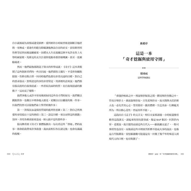 很高興看到《奇才》繁體版推出,每次看這些「怪咖」們的故事,都會給我帶來許多啟發,我由衷相信各位讀完後,也會有滿滿的收穫。