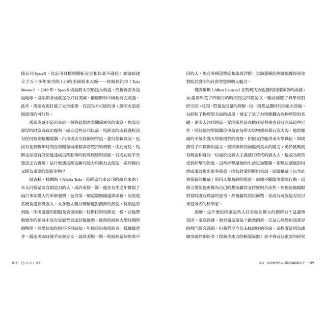 而推動這些變革發生的,除了時代的力量外,更重要的是有一群勇於挑戰現狀的創新者們。愛因斯坦、特斯拉、愛迪生、賈伯斯和馬斯克這些人,在人類歷史上扮演著舉足輕重的角色,這些超卓的天才們,除了智商之外,究竟還有什麼共同點值得我們觀察與學習呢?