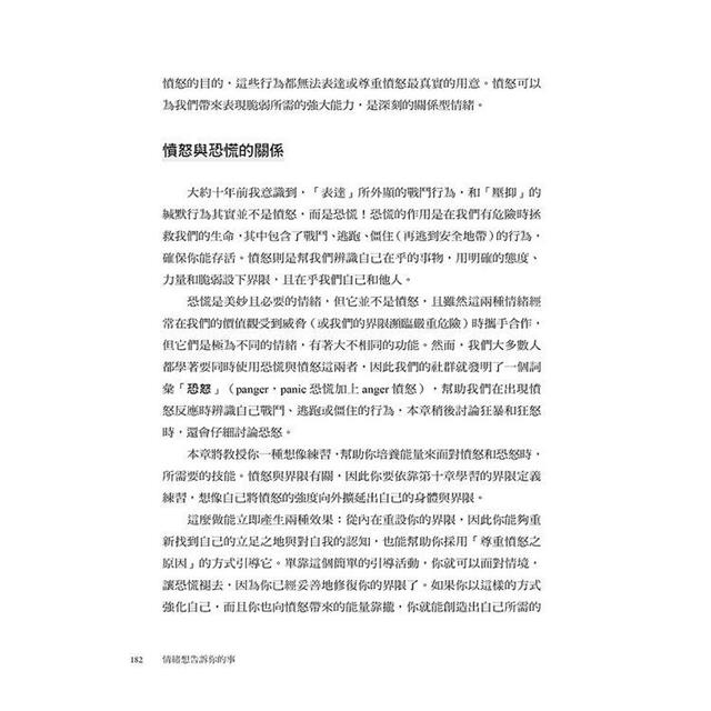 作者還將「焦慮」和「孤獨」以專屬章節來討論,並且全面提升了「恐懼家族」裡所有情緒的描述。使本書更為完整。