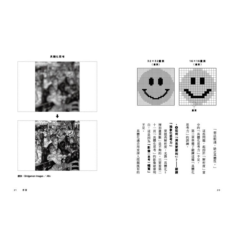 解析度原本是影像處理的術語。畫素數越高,畫面越清晰。同樣地,當你的思考「畫素」密度越高,腦中的影像也會越細膩、越容易理解。這就是具體化思考力的作用。