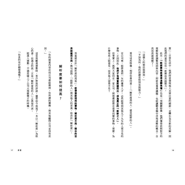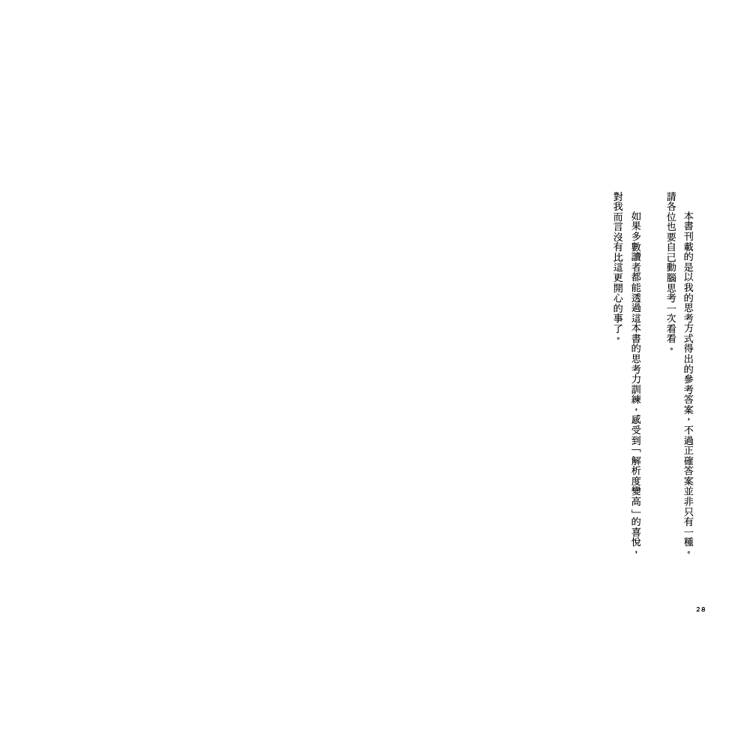 你不需要成為天才,也不必背誦艱澀理論,只要願意一步步練習這些題目,你就能讓自己的解析度變高,看清事情的本質、說出有說服力的話、成為真正能幹的人。