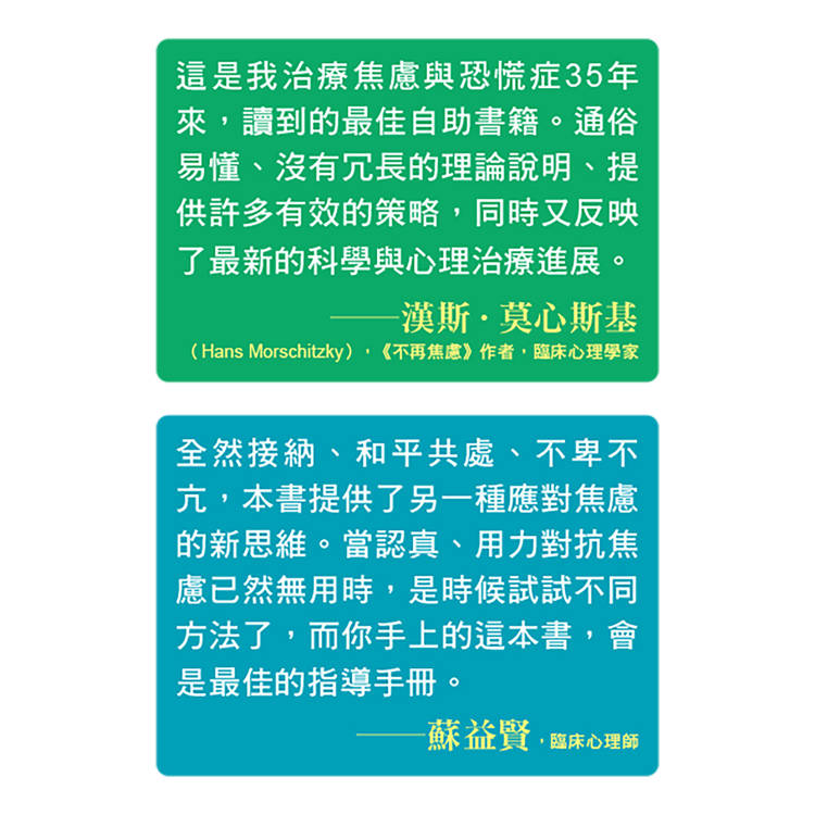 這是我治療焦慮與恐慌症35年來,讀到的最佳自助書籍。通俗易懂,提供許多有效的策略,同時又反映了最新的科學與心理治療進展。