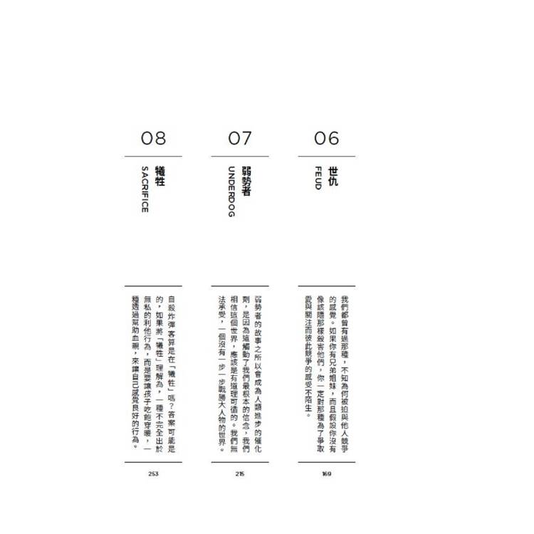 為什麼看劇時看著看著就不小心憤怒了?你被劇中的什麼情節觸動了嗎?為什麼你會被觸動?其實,人生存在著所謂「主旨情節」(Masterplot)的框架,是每個人不自覺卻一再重演的人生劇情框架,你會在哪一齣戲裡重複登場,又要如何跳脫它?