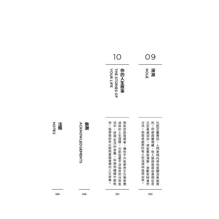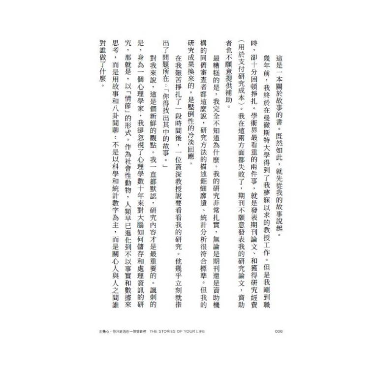 我希望啟發讀者,讓你不只能運用主旨情節達成你的人生目標,也能在最平淡無奇的日常生活中,發現生活的意義。無論你選擇什麼框架,這都是你可以按照意願運用的人生故事。