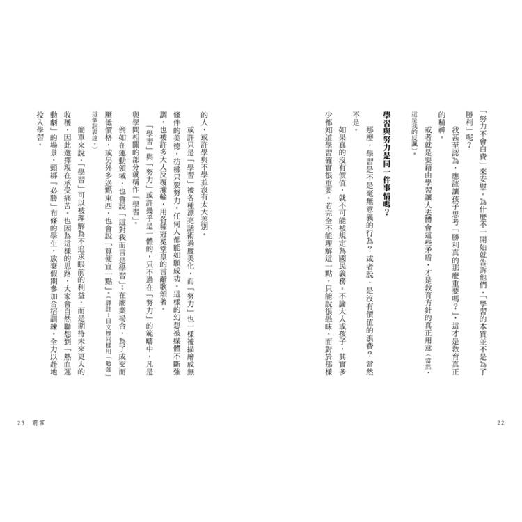 不過,我所說的「學習的價值」,既不是為了勝過他人,也不是為了追求社會上的成功,而是把焦點放在最單純的個人願望,這或許能為讀者帶來前所未有的視角。