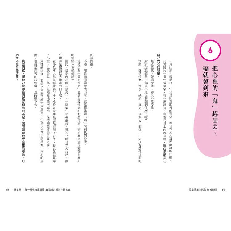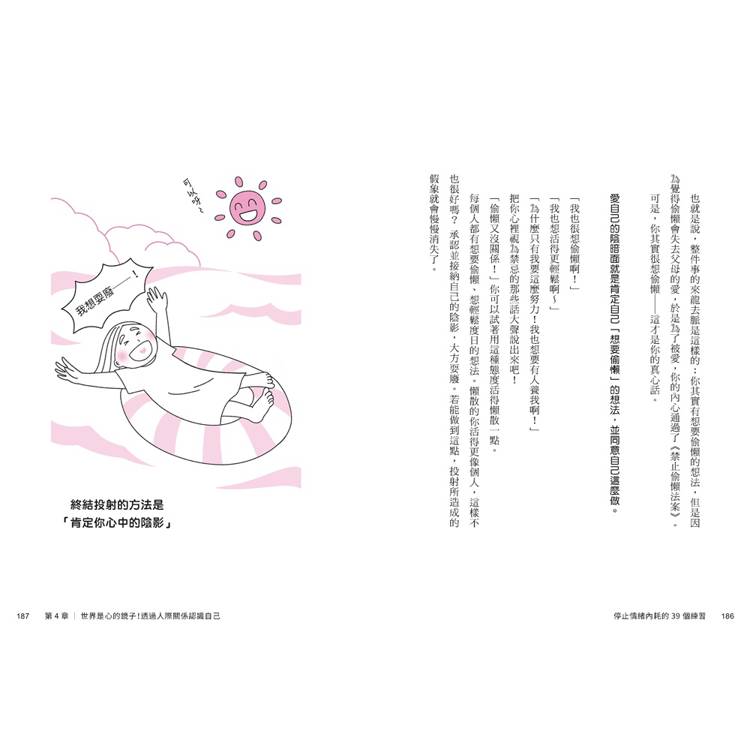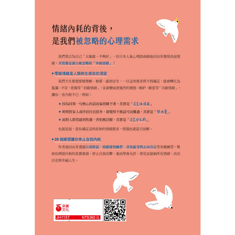 作者池田由芽透過自我對話、情緒覺察練習、書寫感受與正向肯定等方式,幫助你: