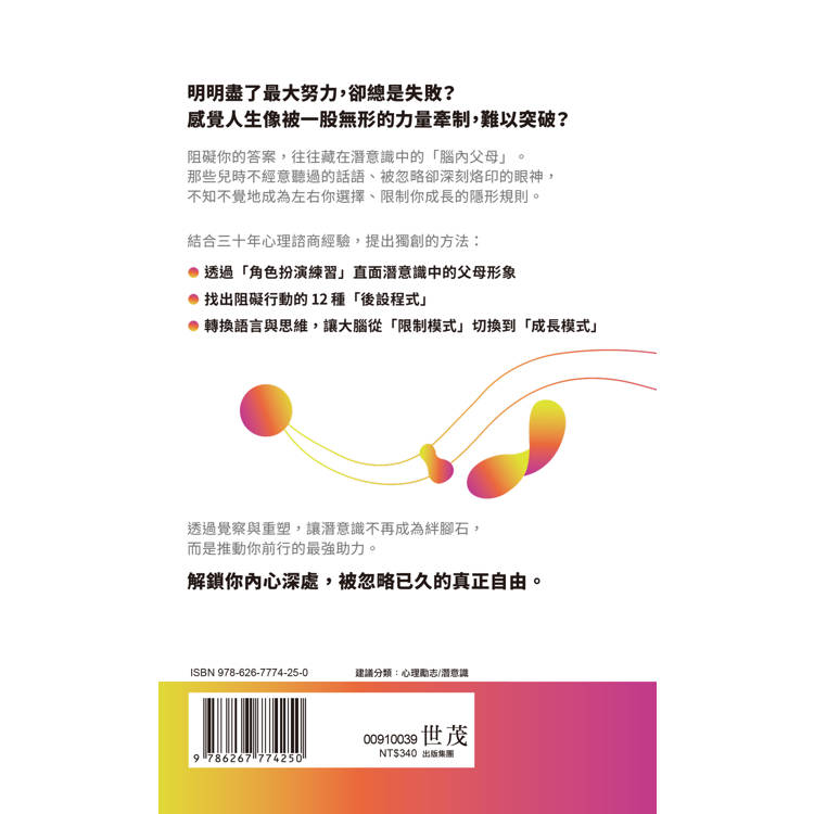 帶你進入潛意識的底層,提供完整的覺察工具與重塑腳本,讓讀者學會辨識、理解並重設那些潛藏的聲音,從此掌握你人生的主導權。