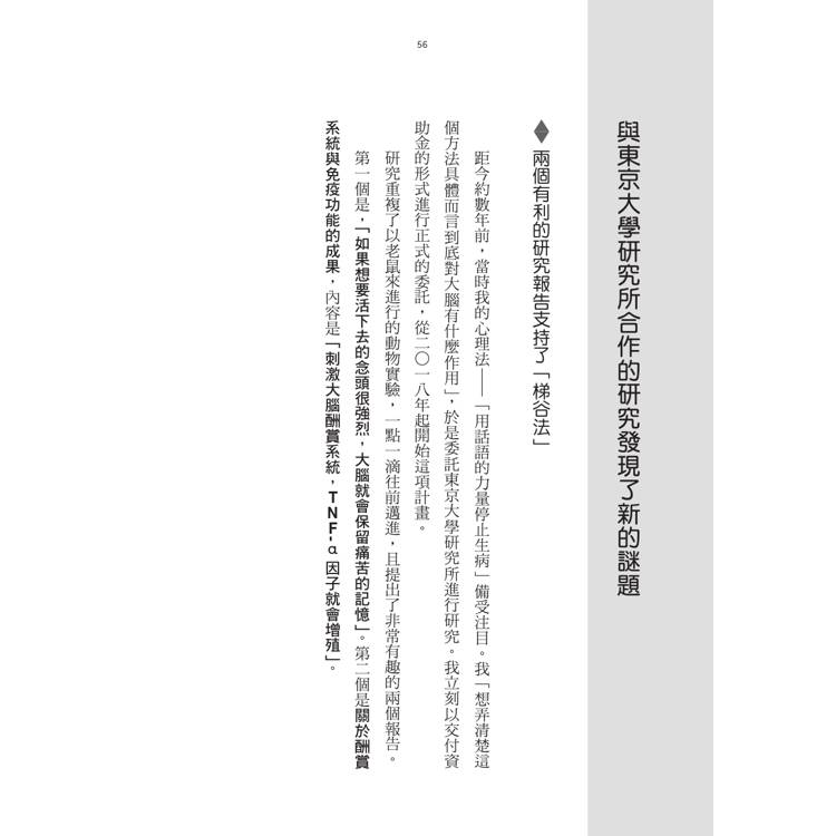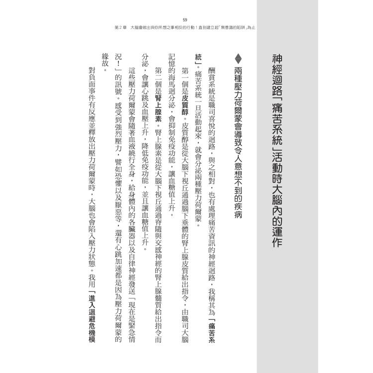 為什麼會這樣?那是因為大腦有個惱人的性質,就是潛意識會做出「與期望相反的行動」。為了生存和安全,大腦容易只留存下痛苦的記憶 。大腦若判斷某種狀態是「生存下來」的必要條件,即使是負面的狀態,它也會持續運作以維持這種「慣性」。這就是深植於我們大腦中的「無意識的陷阱」。