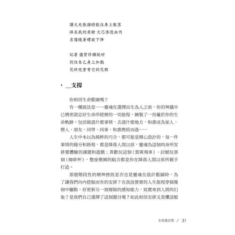 不為了誰非得要有什麼改變,只是化作文字,將故事轉印為話語,只要我還存在,就表示有人和你一樣,仍努力地繼續闖著關。當你開始閱讀靈魂,有天回頭望向曾經歷過的每個掙扎,才可見人生如此浪漫,而我們都將曇花雲煙。