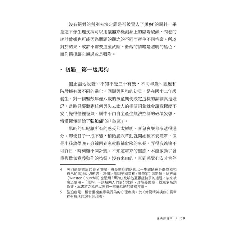 書中介紹了憂鬱症、強迫症、壓力後創傷、解離……等精神疾病,