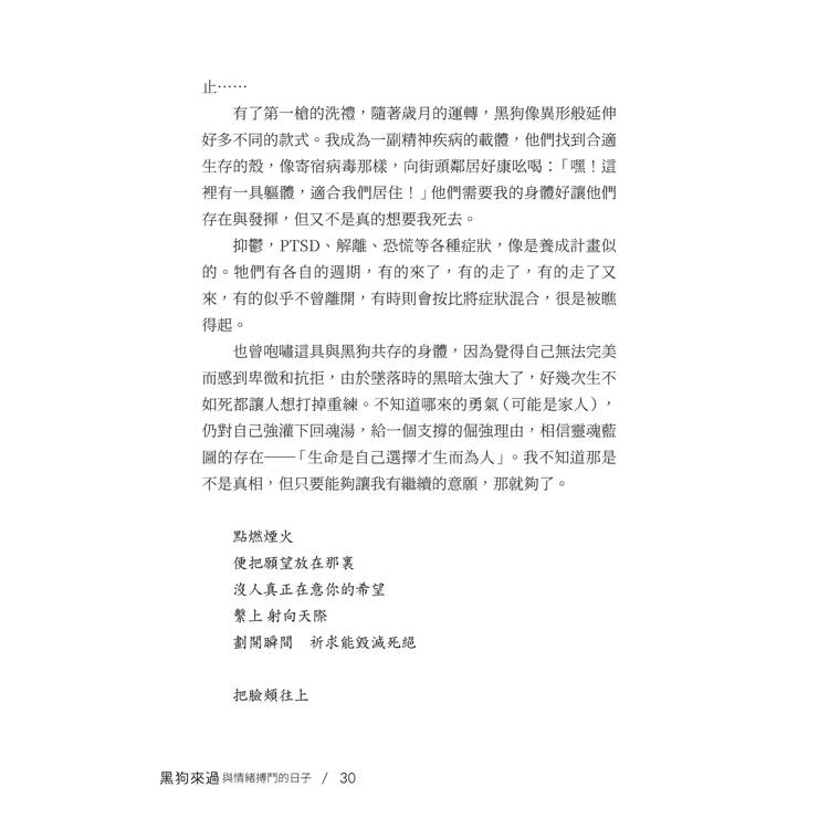 以上內容節錄自《黑狗來過─與情緒搏鬥的日子》菁猊◎著.白象文化出版