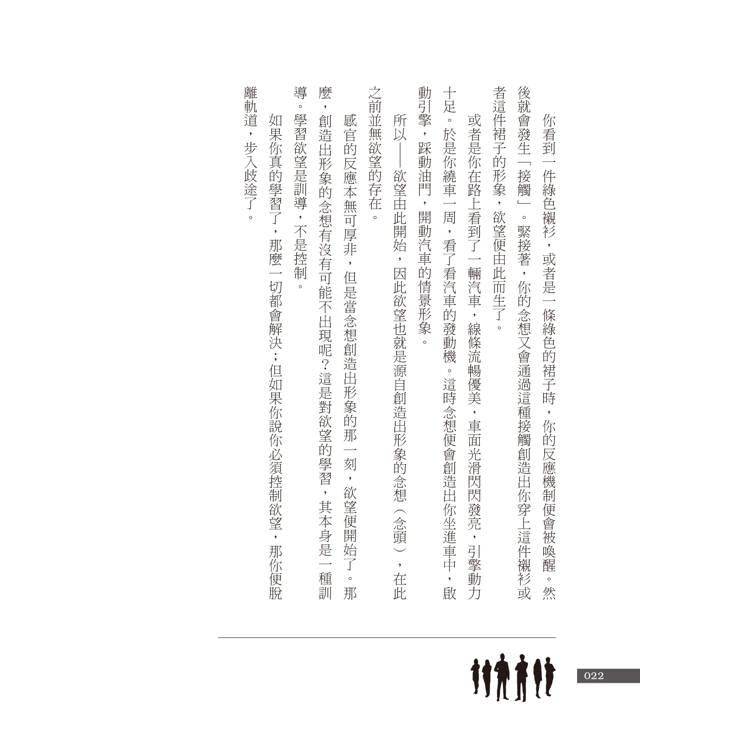 然而,如果我們能不做判斷、不做評估、不去責備地直視欲望,那麼我們會發現欲望不再生根。